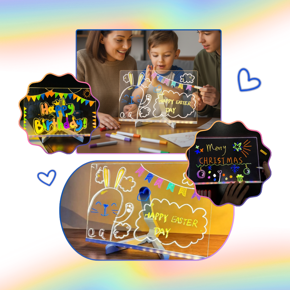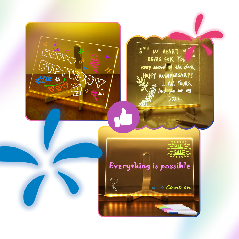 More than a utility, this Mesmerizing LED Note Board is a canvas for creativity and personality. Kids can doodle and color with glowing lines, teens can craft stylish daily affirmations, and professionals can sketch or brainstorm on the fly. It invites constant reinvention—write, draw, erase, repeat—all under captivating light. This is your space to create, reflect, and communicate in a way that feels fun, personal, and visually impactful. From motivational mantras to late-night sketches, it's a unique tool for limitless expression.