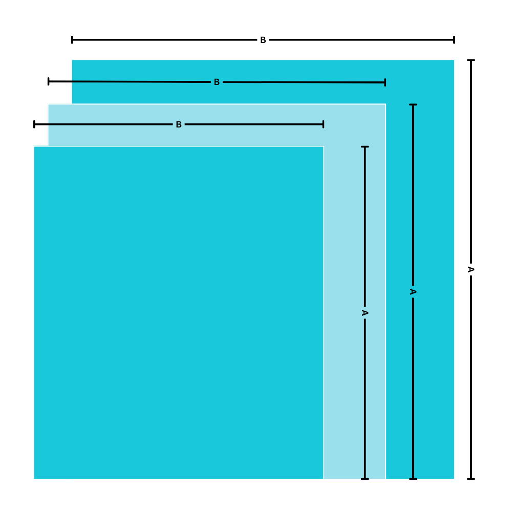 Dimensions: A x B = 100 × 70 cm / 39 × 27.5 inches A x B = 150 × 130 cm / 59 × 51 inches A x B = 200 × 150 cm / 79 × 59 inches