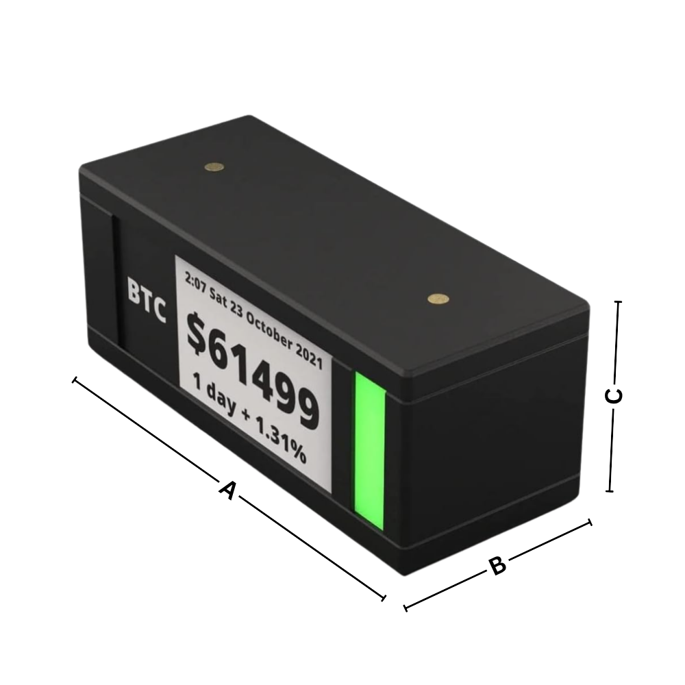 Unlike traditional LCD screens, the live crypto ticker uses a premium e‑Ink display for ultra-crisp, glare-free readability. The monochrome screen provides paper-like contrast that’s easy on the eyes—even after hours of tracking. Its low-energy display also means you get all-day visibility with minimal power use. Ideal for home offices, trading setups, and minimalist workspaces, this display looks sharp and stays sharp.